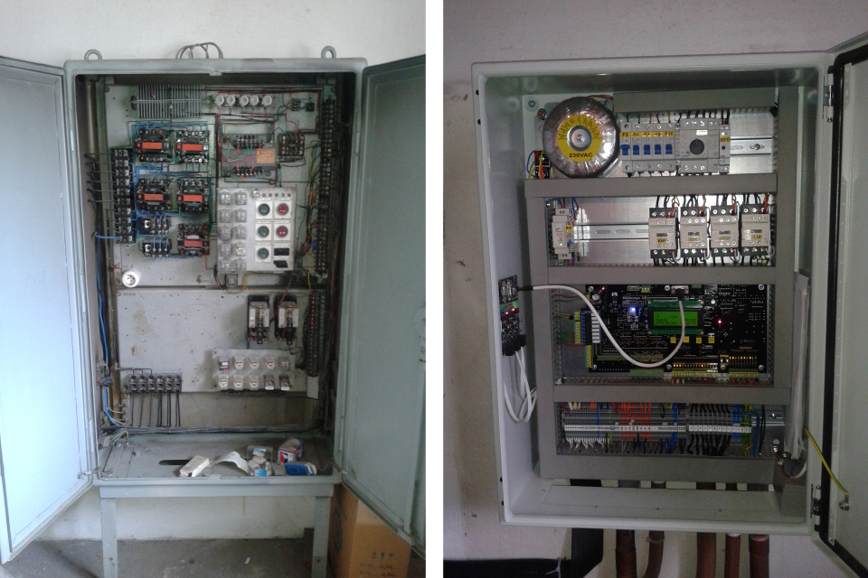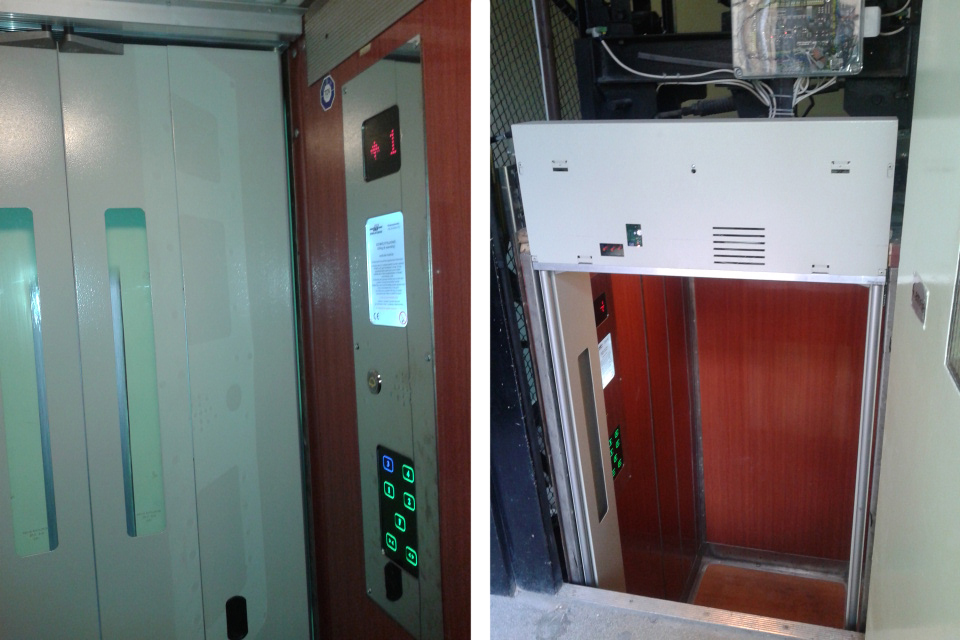 Régi kézi működésű fa fülkeajtó cseréje új esztétikus automata fülkeajtóra az új szabvány előírásai szerint.